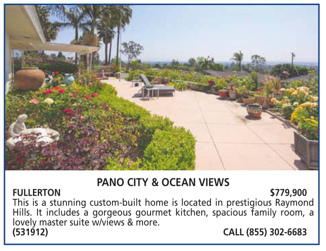 PANO CITY & OCEAN VIEWS FULLERTON $779,900 This is a stunning custom-built home is located in prestigious Raymond Hills. It includes a gorgeous gourmet kitchen, spacious family room, a lovely master suite w/views & more. (531912) CALL (855) 302-6683