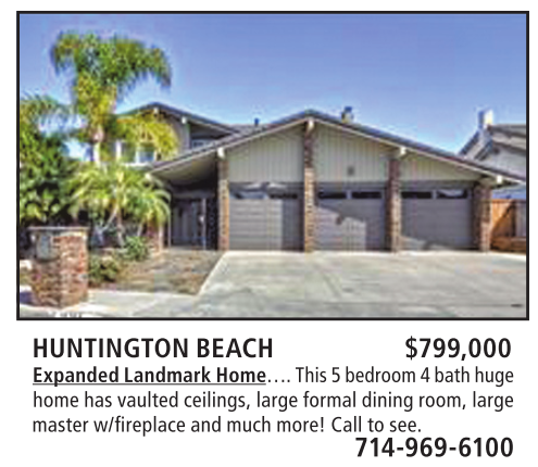 HUNTINGTON BEACH $799,000 Expanded Landmark Home…. This 5 bedroom 4 bath huge home has vaulted ceilings, large formal dining room, large master w/fireplace and much more! Call to see.