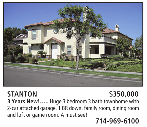 STANTON $350,000 3 Years New!….. Huge 3 bedroom 3 bath townhome with 2-car attached garage. 1 BR down, family room, dining room and loft or game room. A must see!