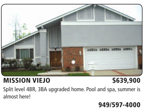MISSION VIEJO $639,900 Split level 4BR, 3BA upgraded home. Pool and spa, summer is almost here!