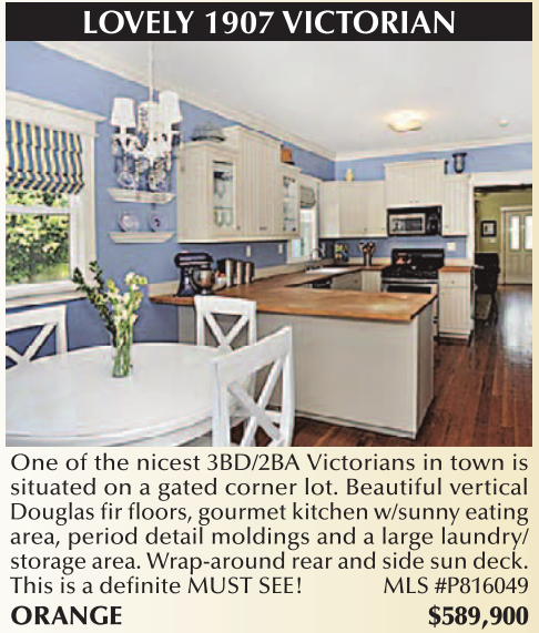 One of the nicest 3BD/2BA Victorians in town is situated on a gated corner lot. Beautiful vertical Douglas fir floors, gourmet kitchen w/sunny eating area, period detail moldings and a large laundry/ storage area. Wrap-around rear and side sun deck. This is a definite MUST SEE! MLS #P816049 ORANGE $589,900
