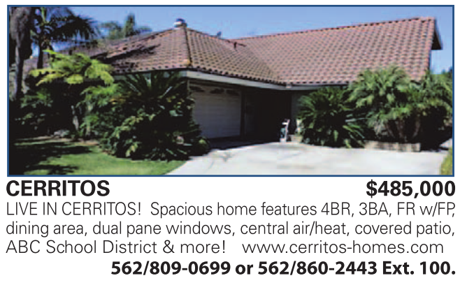 CERRITOS $485,000 LIVE IN CERRITOS! Spacious home features 4BR, 3BA, FR w/FP,