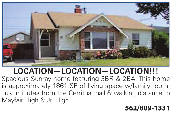 is approximately 1861 SF of living space w/family room. Just minutes from the Cerritos mall & walking distance to Mayfair High & Jr. High.