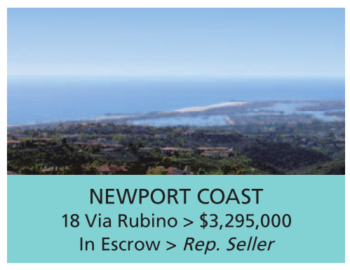 NEWPORT COAST 18 Via Rubino > $3,295,000 In Escrow > Rep. Seller
