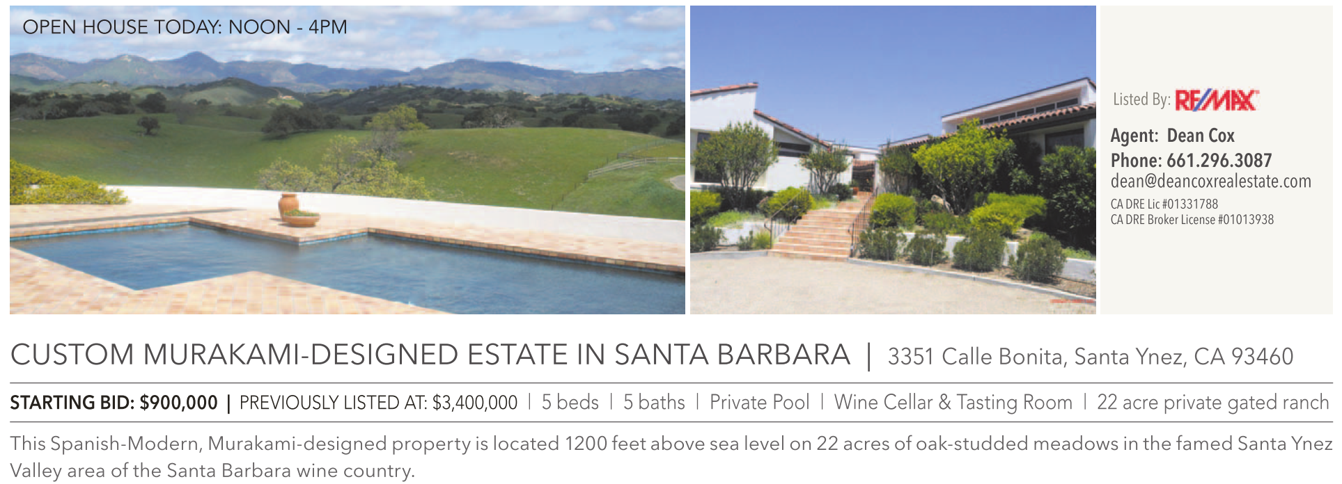Agent: Dean Cox Phone: 661.296.3087 dean@deancoxrealestate.com