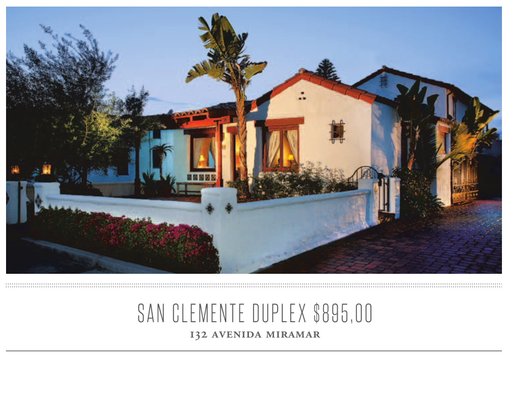 SAN CLEMENTE DUPLEX $895,00