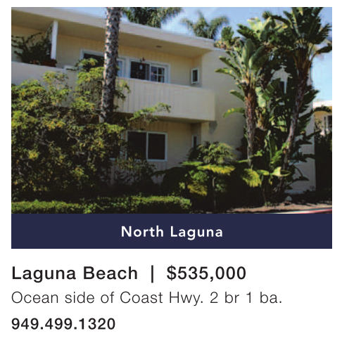 Laguna Beach | $535,000 Ocean side of Coast Hwy. 2 br 1 ba. 949.499.1320