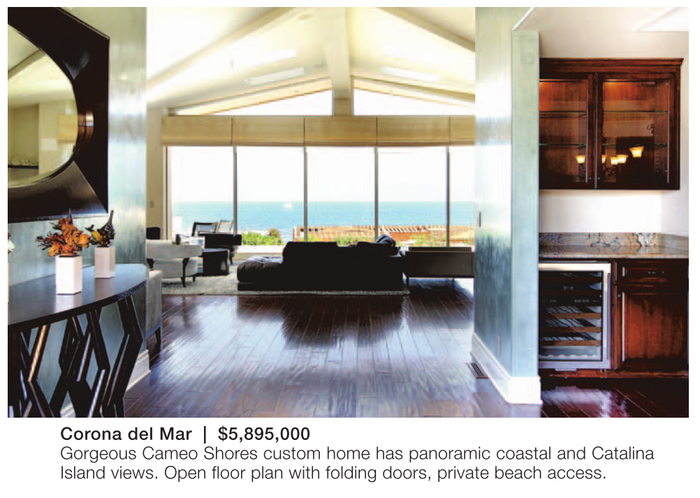 Corona del Mar | $5,895,000 Gorgeous Cameo Shores custom home has panoramic coastal and Catalina Island views. Open floor plan with folding doors, private beach access.