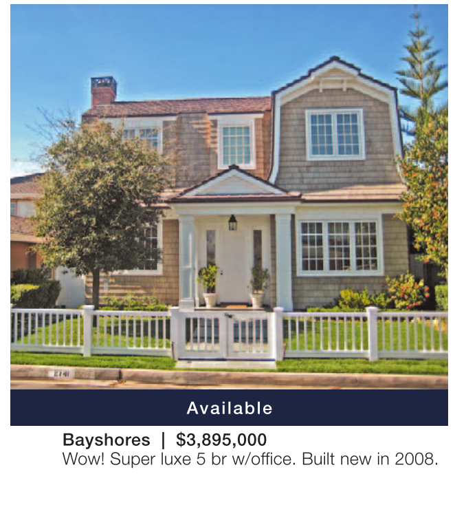 Bayshores | $3,895,000 Wow! Super luxe 5 br w/office. Built new in 2008.