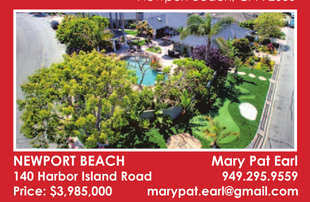 NEWPORT BEACH Mary Pat Earl 140 Harbor Island Road 949.295.9559 Price: $3,985,000 marypat.earl@gmail.com