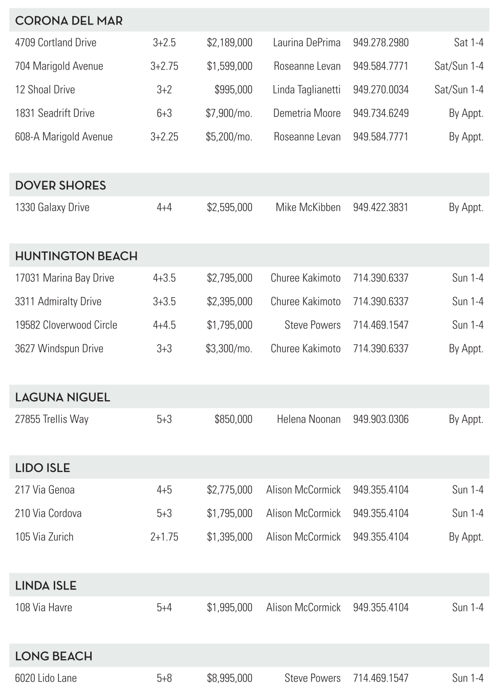 4709 Cortland Drive 3+2.5 $2,189,000 Laurina DePrima 949.278.2980 Sat 1-4