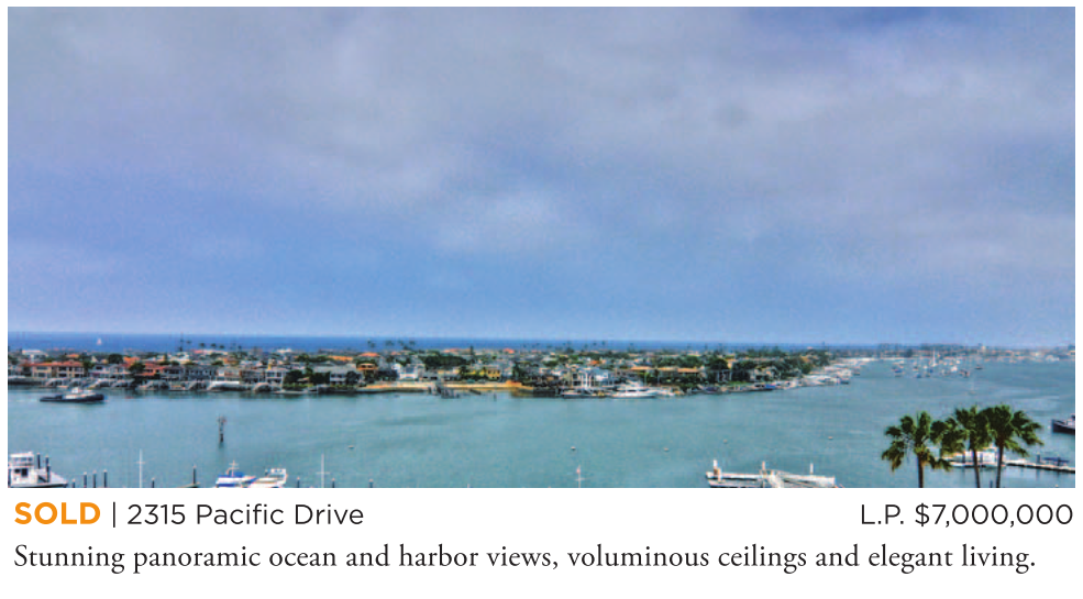 SOLD | 2315 Pacific Drive L.P. $7,000,000 Stunning panoramic ocean and harbor views, voluminous ceilings and elegant living.