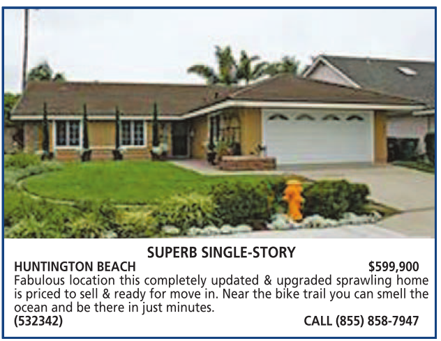 SUPERB SINGLE-STORY HUNTINGTON BEACH $599,900 Fabulous location this completely updated & upgraded sprawling home is priced to sell & ready for move in. Near the bike trail you can smell the ocean and be there in just minutes. (532342) CALL (855) 858-7947
