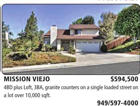 MISSION VIEJO $594,500 4BD plus Loft, 3BA, granite counters on a single loaded street on a lot over 10,000 sqft.