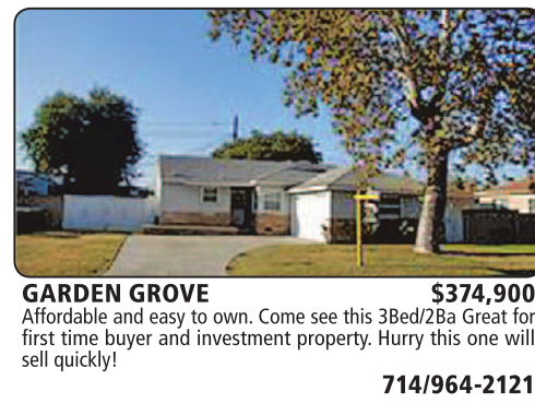 GARDEN GROVE $374,900 Affordable and easy to own. Come see this 3Bed/2Ba Great for first time buyer and investment property. Hurry this one will sell quickly!