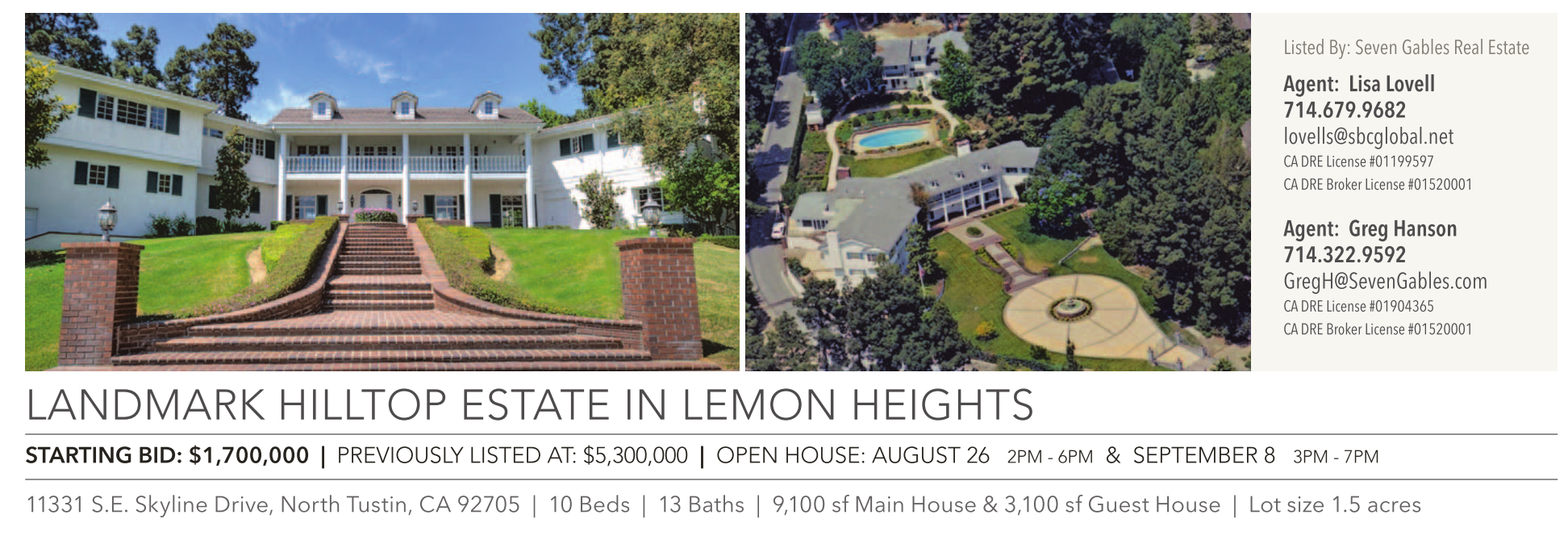 Agent: Greg Hanson 714.322.9592 GregH@SevenGables.com