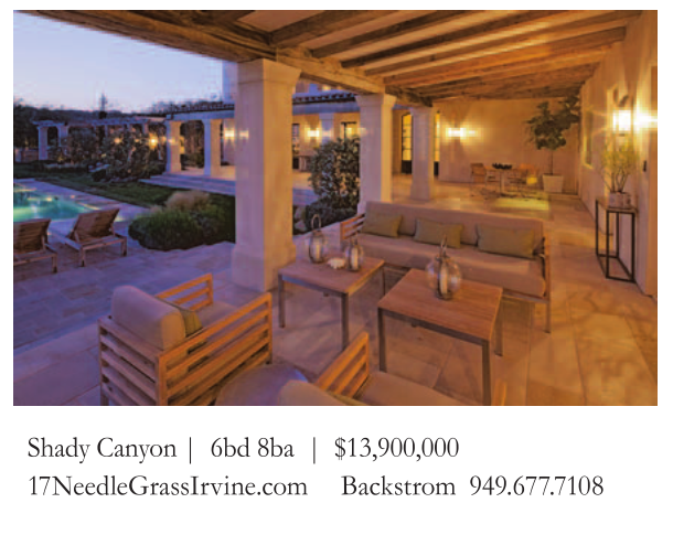 Shady Canyon | 6bd 8ba | $13,900,000 17NeedleGrassIrvine.com Backstrom 949.677.7108