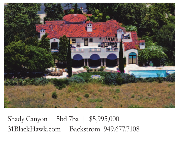 Shady Canyon | 5bd 7ba | $5,995,000 31BlackHawk.com Backstrom 94