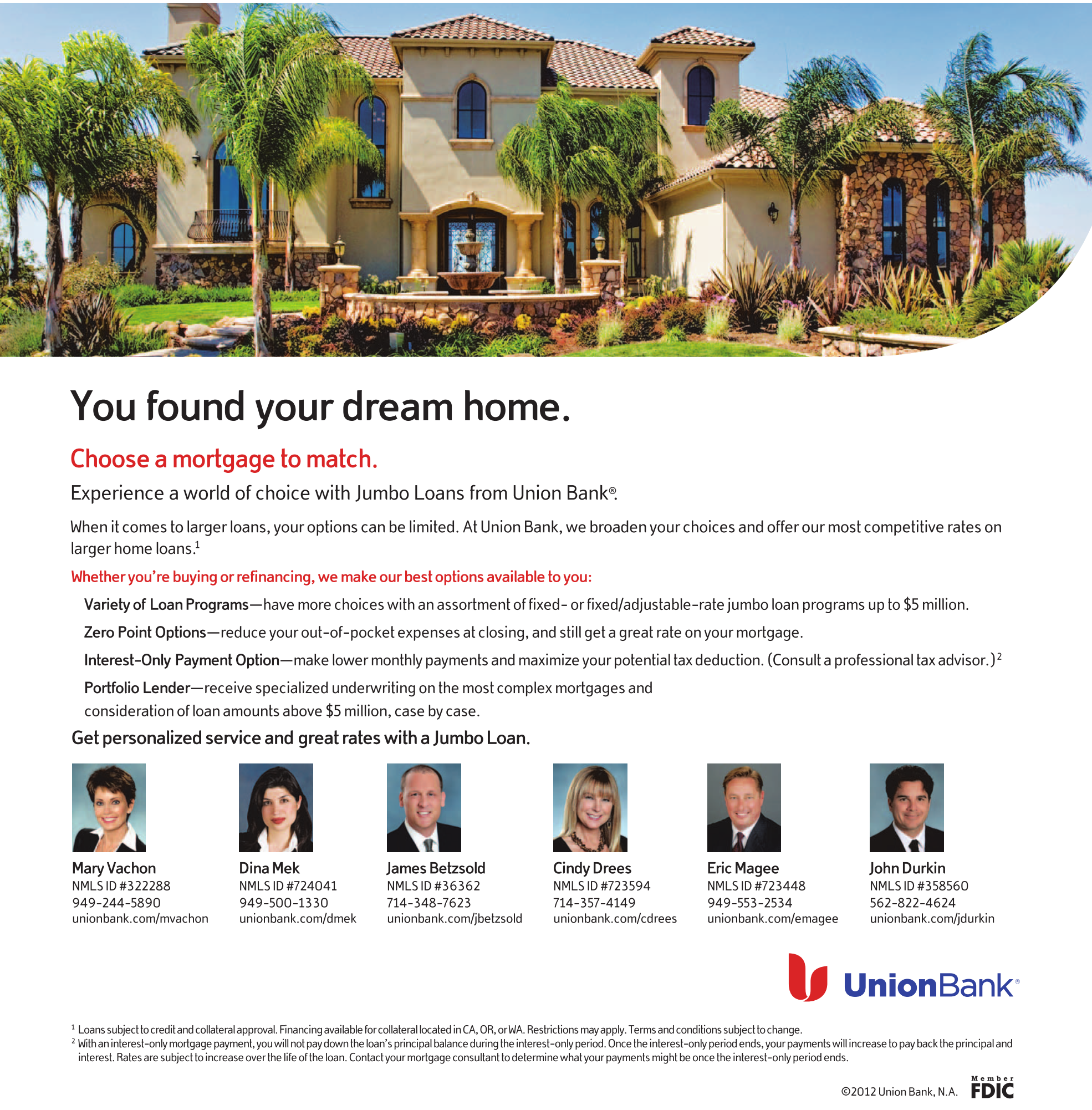 When it comes to larger loans, your options can be limited. At Union Bank, we broaden your choices and offer our most competitive rates on larger home loans. 1