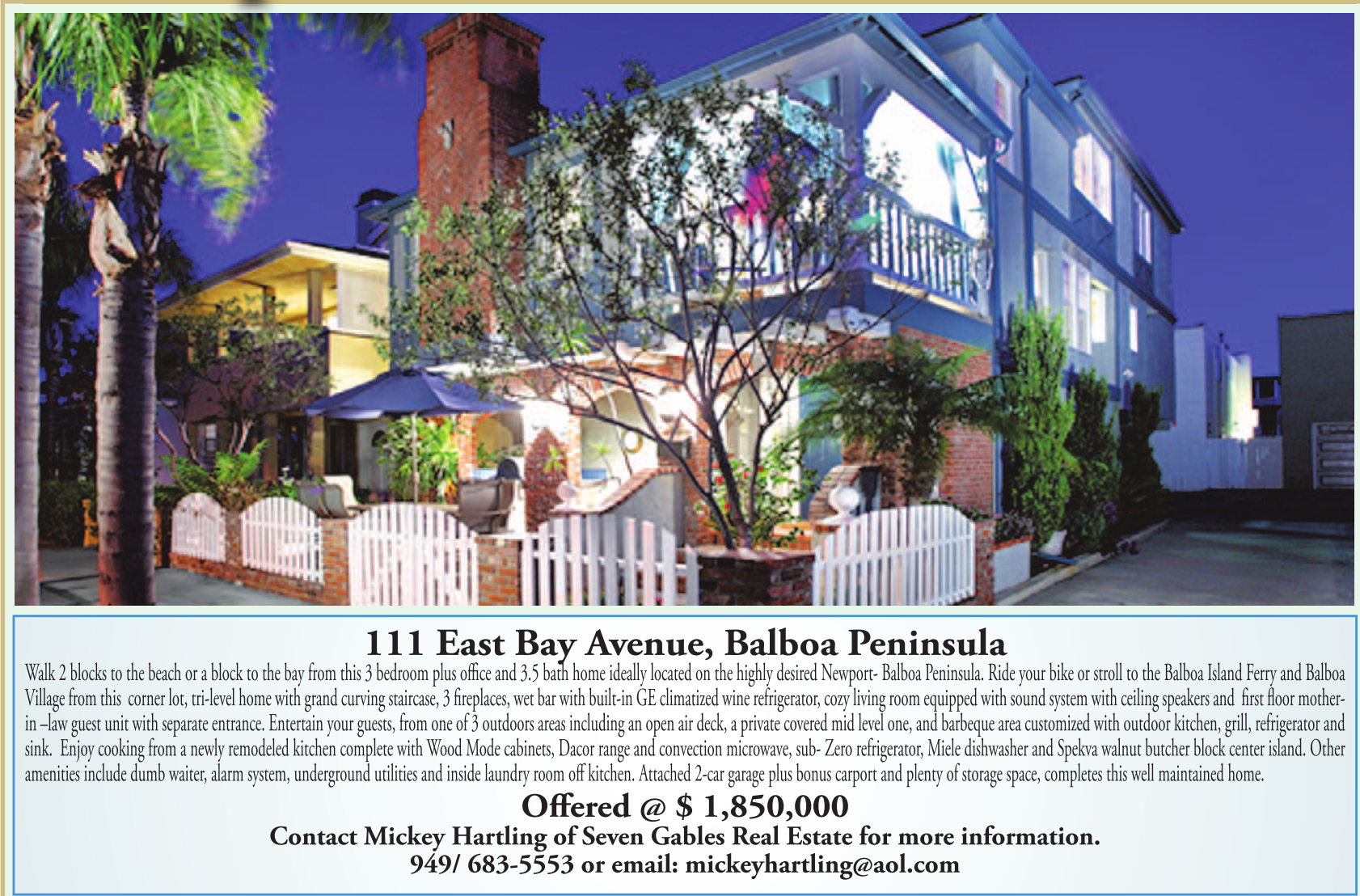 Walk 2 blocks to the beach or a block to the bay from this 3 bedroom plus office and 3.5 bath home ideally located on the highly desired Newport- Balboa Peninsula. Ride your bike or stroll to the Balboa Island Ferry and Balboa Village from this corner lot, tri-level home with grand curving staircase, 3 fireplaces, wet bar with built-in GE climatized wine refrigerator, cozy living room equipped with sound system with ceiling speakers and first floor motherin –law guest unit with separate entrance. Entertain your guests, from one of 3 outdoors areas including an open air deck, a private covered mid level one, and barbeque area customized with outdoor kitchen, grill, refrigerator and sink. Enjoy cooking from a newly remodeled kitchen complete with Wood Mode cabinets, Dacor range and convection microwave, sub- Zero refrigerator, Miele dishwasher and Spekva walnut butcher block center island. Other amenities include dumb waiter, alarm system, underground utilities and inside laundry room off kitchen. Attached 2-car garage plus bonus carport and plenty of storage space, completes this well maintained home.