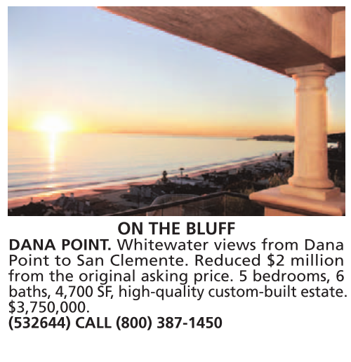 Point to San Clemente. Reduced $2 million from the original asking price. 5 bedrooms, 6