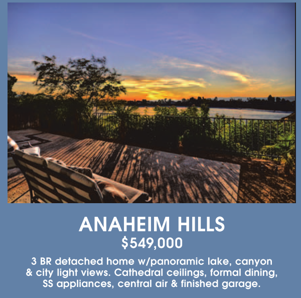 3 BR detached home w/panoramic lake, canyon & city light views. Cathedral ceilings, formal dining, SS appliances, central air & finished garage.