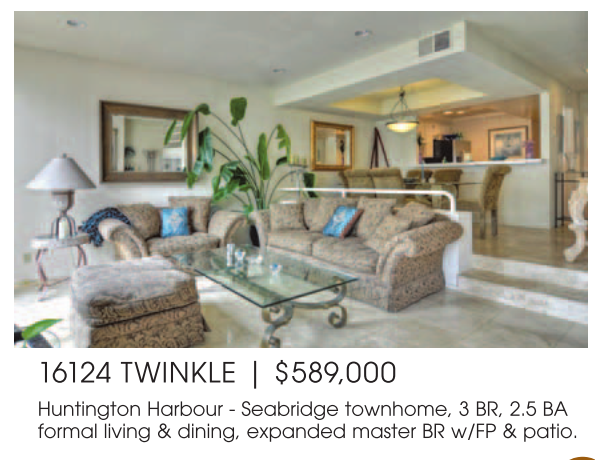 Huntington Harbour - Seabridge townhome, 3 BR, 2.5 BA formal living & dining, expanded master BR w/FP & patio.