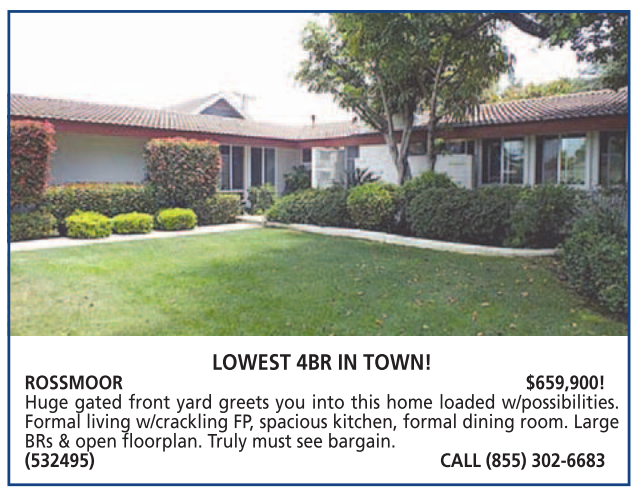 LOWEST 4BR IN TOWN! ROSSMOOR $659,900! Huge gated front yard greets you into this home loaded w/possibilities. Formal living w/crackling FP, spacious kitchen, formal dining room. Large BRs & open floorplan. Truly must see bargain. (532495) CALL (855) 302-6683