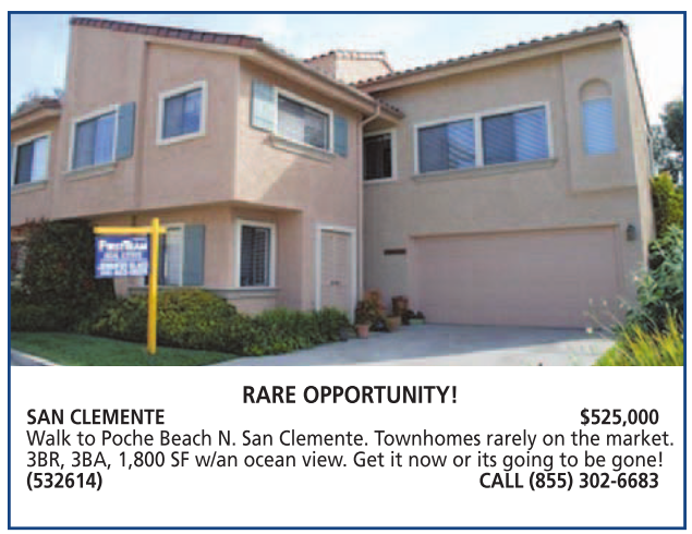SAN CLEMENTE $525,000 Walk to Poche Beach N. San Clemente. Townhomes rarely on the market. 3BR, 3BA, 1,800 SF w/an ocean view. Get it now or its going to be gone! (532614) CALL (855) 302-6683