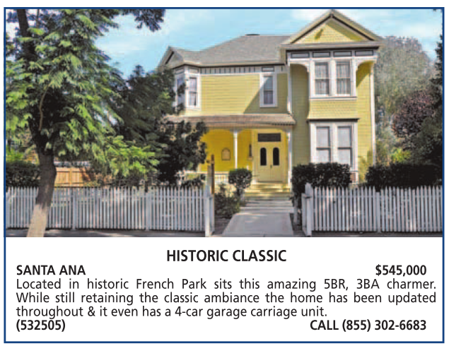 HISTORIC CLASSIC SANTA ANA $545,000 Located in historic French Park sits this amazing 5BR, 3BA charmer. While still retaining the classic ambiance the home has been updated throughout & it even has a 4-car garage carriage unit. (532505) CALL (855) 302-6683