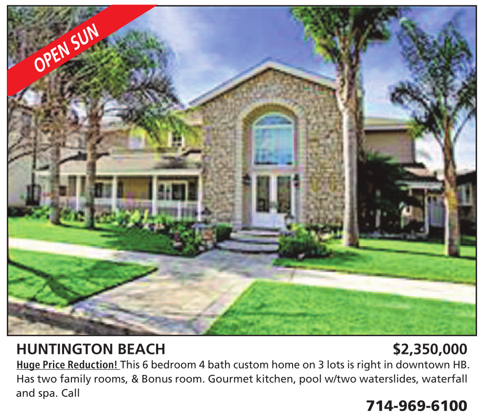 Huge Price Reduction! This 6 bedroom 4 bath custom home on 3 lots is right in downtown HB. Has two family rooms, & Bonus room. Gourmet kitchen, pool w/two waterslides, waterfall and spa. Call