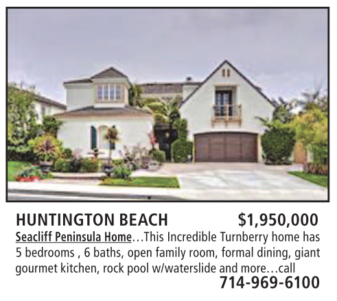 HUNTINGTON BEACH $1,950,000 Seacliff Peninsula Home…This Incredible Turnberry home has 5 bedrooms , 6 baths, open family room, formal dining, giant gourmet kitchen, rock pool w/waterslide and more…call 714-969-6100