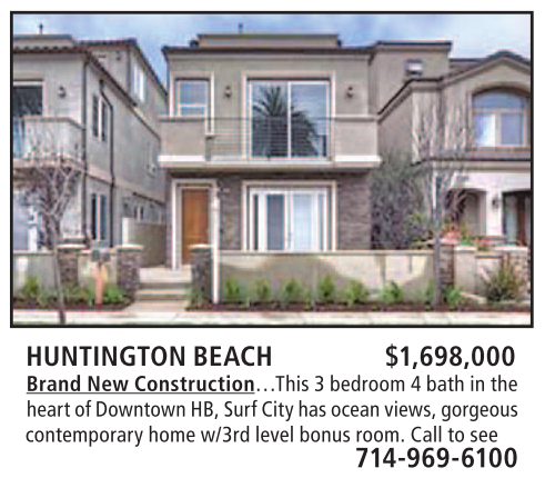HUNTINGTON BEACH $1,698,000 Brand New Construction…This 3 bedroom 4 bath in the heart of Downtown HB, Surf City has ocean views, gorgeous contemporary home w/3rd level bonus room. Call to see 714-969-6100