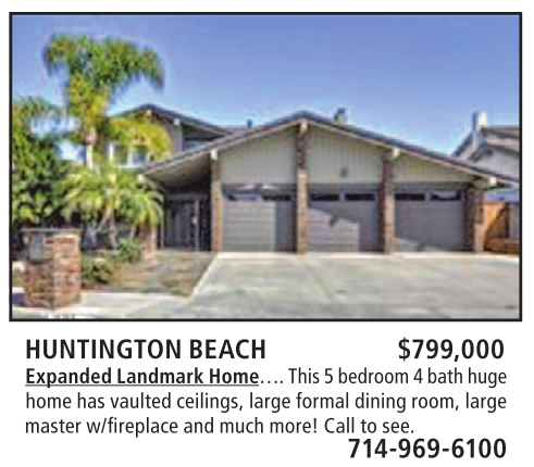 HUNTINGTON BEACH $799,000 Expanded Landmark Home…. This 5 bedroom 4 bath huge home has vaulted ceilings, large formal dining room, large master w/fireplace and much more! Call to see.