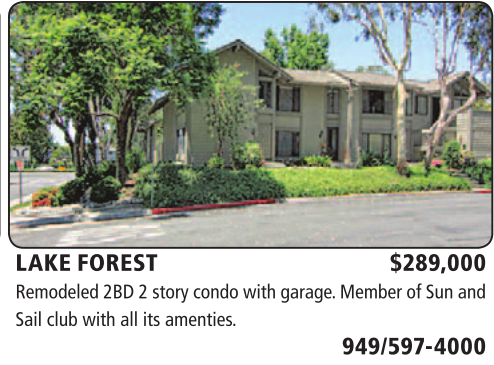 LAKE FOREST $289,000 Remodeled 2BD 2 story condo with garage. Member of Sun and Sail club with all its amenties.