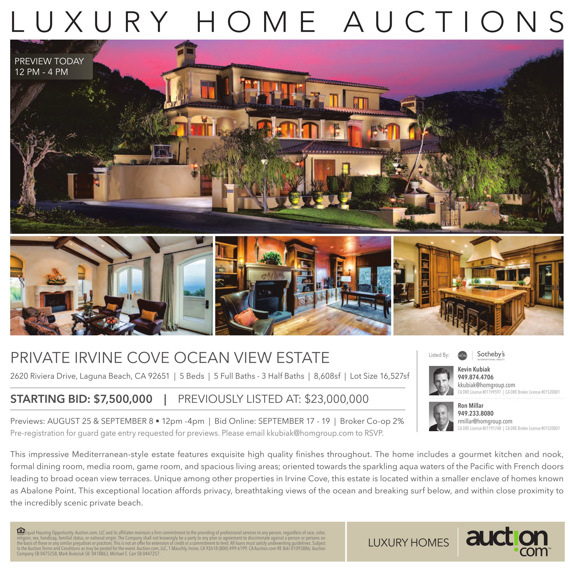 2620 Riviera Drive, Laguna Beach, CA 92651 | 5 Beds | 5 Full Baths - 3 Half Baths | 8,608sf | Lot Size 16,527sf