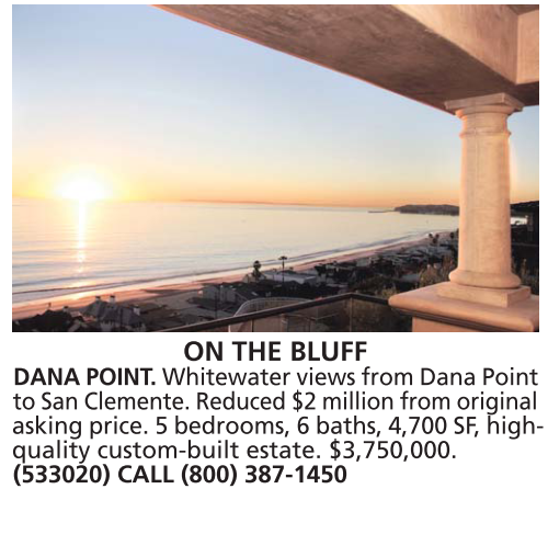 to San Clemente. Reduced $2 million from original asking price. 5 bedrooms, 6 baths, 4,700 SF, highquality