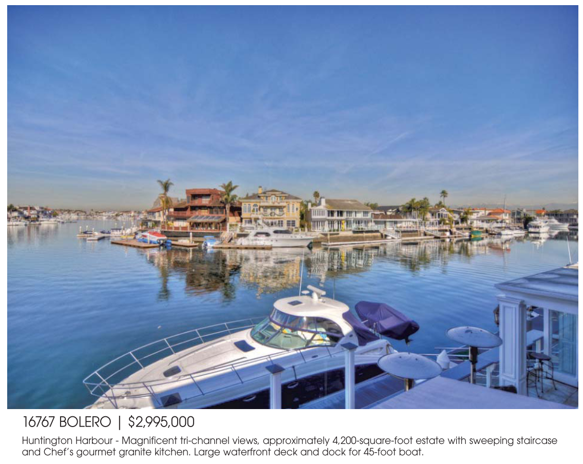 Huntington Harbour - Magnificent tri-channel views, approximately 4,200-square-foot estate with sweeping staircase and Chef’s gourmet granite kitchen. Large waterfront deck and dock for 45-foot boat.