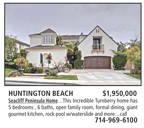 HUNTINGTON BEACH $1,950,000 Seacliff Peninsula Home…This Incredible Turnberry home has 5 bedrooms , 6 baths, open family room, formal dining, giant gourmet kitchen, rock pool w/waterslide and more…call 714-969-6100