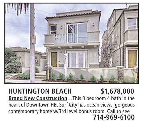 HUNTINGTON BEACH $1,678,000 Brand New Construction…This 3 bedroom 4 bath in the heart of Downtown HB, Surf City has ocean views, gorgeous contemporary home w/3rd level bonus room. Call to see 714-969-6100