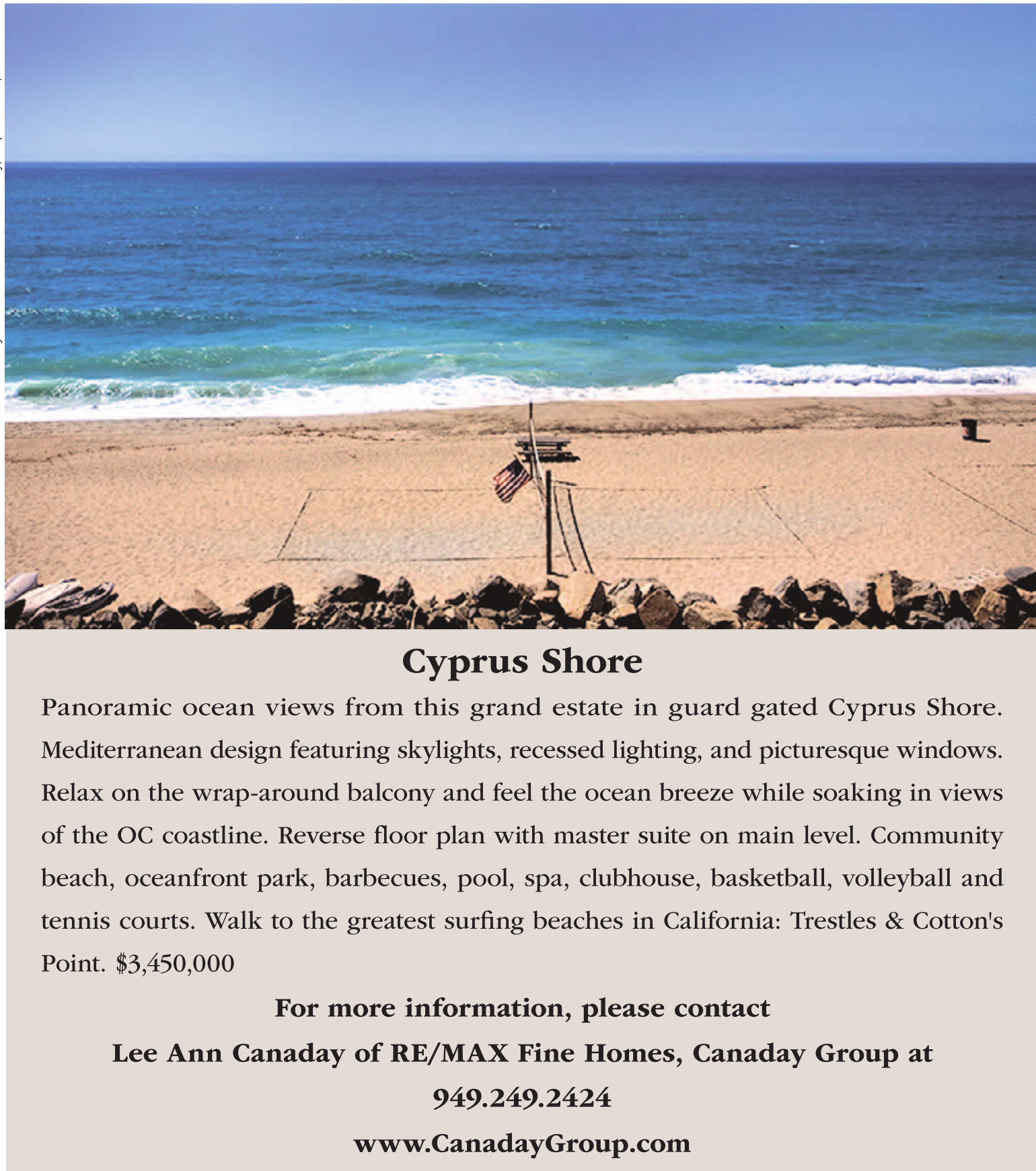 For more information, please contact Lee Ann Canaday of RE/MAX Fine Homes, Canaday Group at 949.249.2424 www.CanadayGroup.com