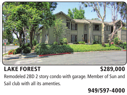 LAKE FOREST $289,000 Remodeled 2BD 2 story condo with garage. Member of Sun and Sail club with all its amenties.