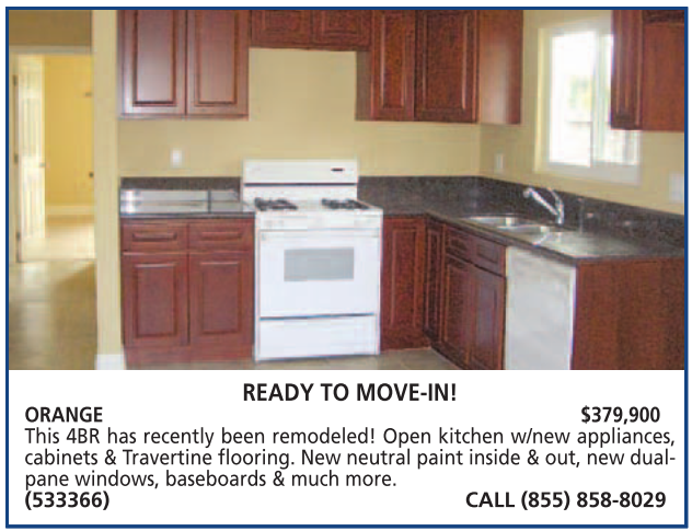 ORANGE $379,900 This 4BR has recently been remodeled! Open kitchen w/new appliances, cabinets & Travertine flooring. New neutral paint inside & out, new dualpane windows, baseboards & much more.