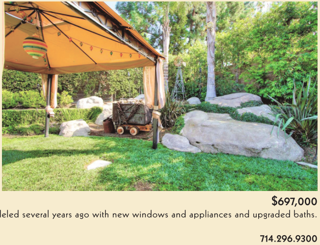$697,000 Remodeled several years ago with new windows and appliances and upgraded baths. 714.296.9300