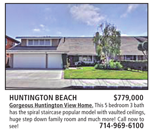 HUNTINGTON BEACH $779,000 Gorgeous Huntington View Home. This 5 bedroom 3 bath has the spiral staircase popular model with vaulted ceilings,