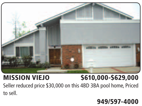 MISSION VIEJO $610,000-$629,000 Seller reduced price $30,000 on this 4BD 3BA pool home, Priced to sell.