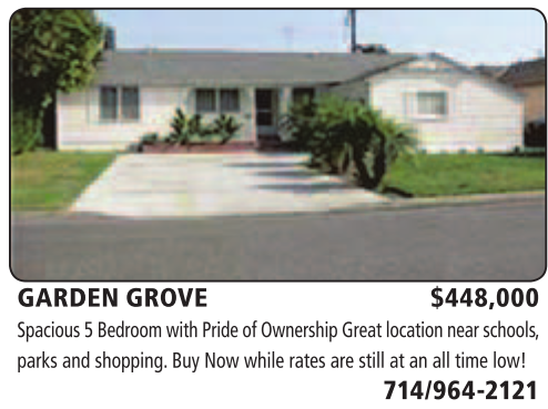 GARDEN GROVE $448,000 Spacious 5 Bedroom with Pride of Ownership Great location near schools, parks and shopping. Buy Now while rates are still at an all time low!
