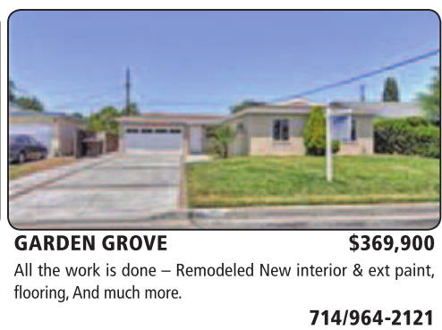 GARDEN GROVE $369,900 All the work is done – Remodeled New interior & ext paint, flooring, And much more.