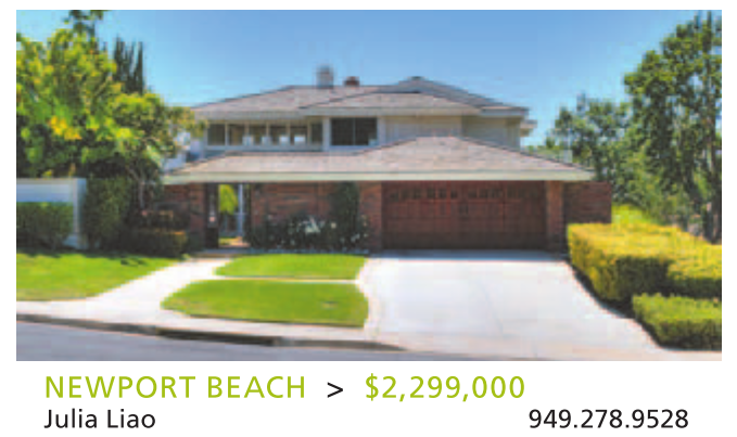 NEWPORT BEACH > $2,299,000 Julia Liao 949.278.9528
