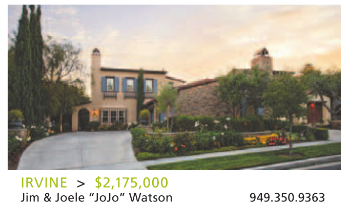 IRVINE > $2,175,000 Jim & Joele “JoJo” Watson 949.350.9363